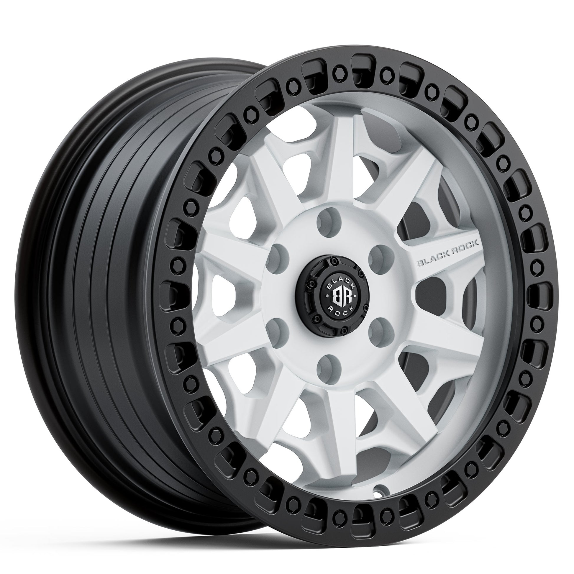 BLACK ROCK CAGE SATIN WHITE WITH BLACK RING 17X8 6X139.7